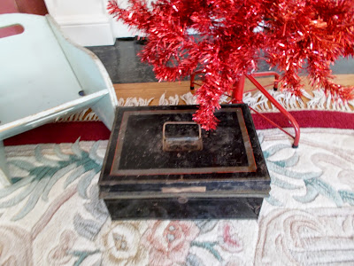 I loved the candlewick tree skirt and the old wallpaper brushes in their original box. I thought the double boiler and the baby vase were too good to pass up and the black tin box turned out to be a great find. It dates to the late 1800's, early 1900's and was probably a document or deed box. I saw one at an antique shop with separate tins inside to hold spices.