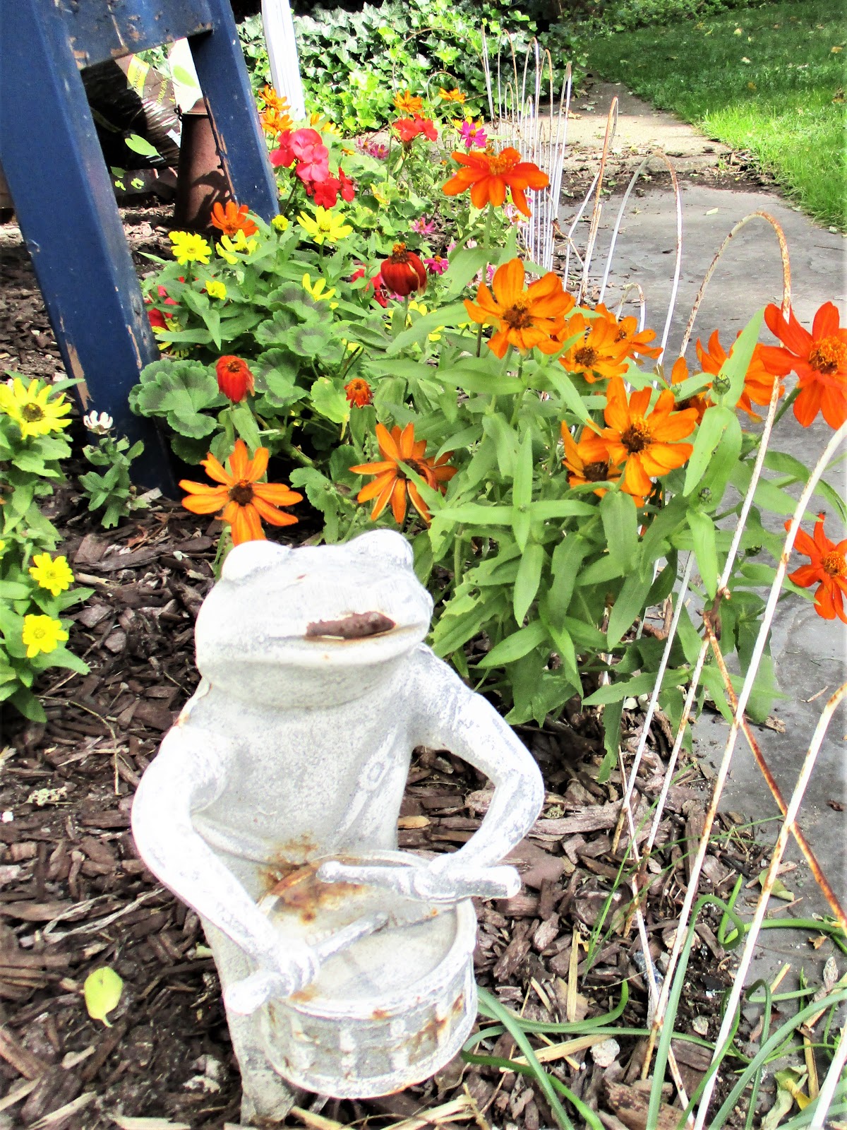 We have had two days of near 80 degrees, after 50's last week and 50's in the forcast for the end of this week. I went out to check my gardens and they are fading fast, as they should be this time of year. The Lantana and Bacopa pot is still going strong as is the Zinnia garden. The Zinnia never grew until mid September so I am happy to have them around still.