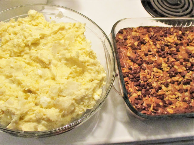My time in the kitchen is done for the day! My husband is having a Fireside tonight with some guys and he is serving Nathan's hot dogs with all the fixin's, including New York City pushcart onions. I was asked to make Italian Potato Salad and a dessert. Of course I chose Caramel Bacon Brownies, oh my!
