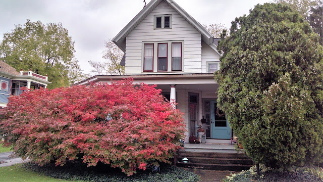 One of my favorite things in Fall....the Burning Bush turning red. I know I need to trim back all the bushes in the front of my house but when I know this red is coming, I don't have the heart to do it. Plus it is nice privacy for our front porch. They do cover up a lot of the architecture of this old 1870's house so I may need to call a landscaper next Spring :-(